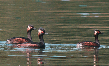 Die Leineniederung zwischen Einbeck und Northeim erwies sich als gewohnt artenreich. Zwar glänzte der Einbecker Wanderfalke durch Abwesenheit, doch sorgten Grauschnäpper und Wasseramsel in der Maibockmetropole für eine gewisse Kompensation. Im Leinepolder dümpelte, mit Ausnahme der Spießente, eine artenreiche Entenpalette. Auch bei den Limikolen war die Ausbeute zufrieden stellend. Mit drei Temminckstrandläufern an der Geschiebesperre Hollenstedt kam sogar eine der begehrten Calidris-Arten hinzu. Bei den Rallen herrschte jedoch bedenkliche Ebbe. Sie waren mit Bläss- und Teichhuhn nur mager vertreten. Am Böllestau bei Hollenstedt geriet ein nestbauendes Paar des Zwergtauchers, der in der Region ein seltener Brutvogel ist, ins Visier Als kleine Besonderheiten komplettierten am Freizeitsee Schilfrohrsänger und Fischadler sowie an der Geschiebesperre eine junge Mittelmeermöwe die Liste.