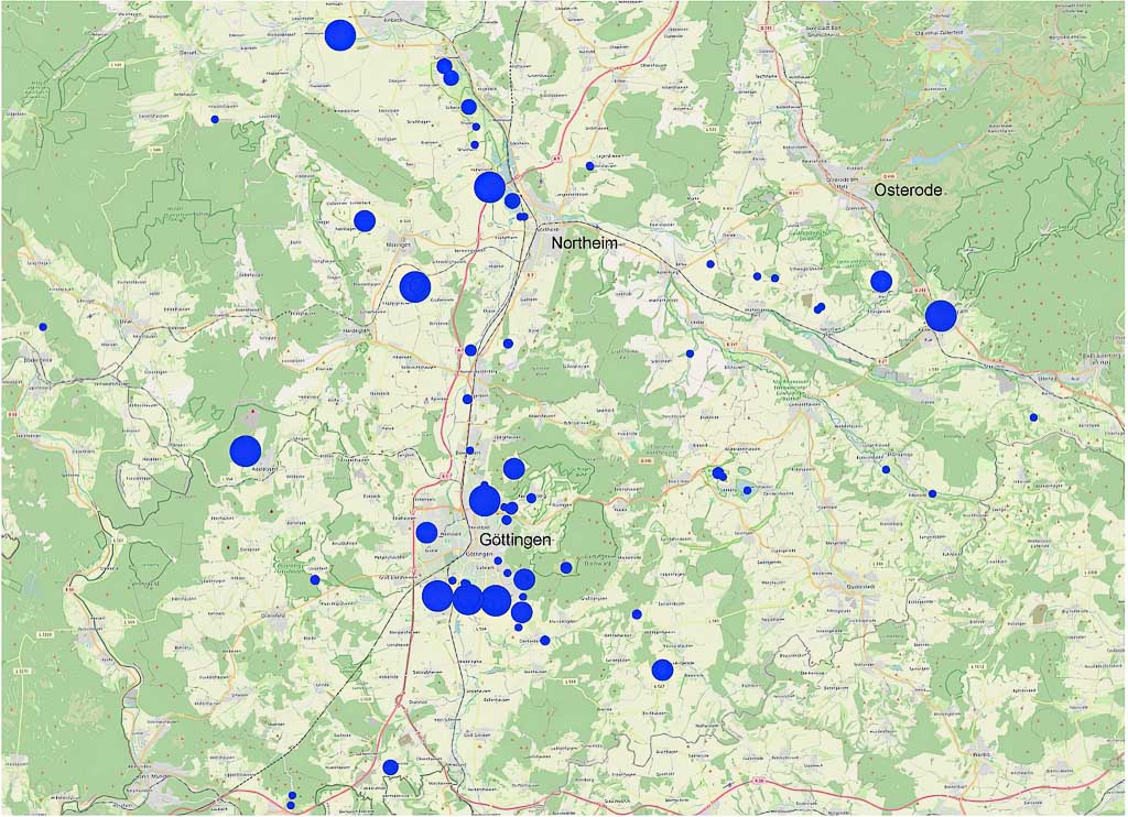 Auch der Wendehals profitiert vom „Waldsterben 2.0“. Neben den bekannten, stabilen Vorkommen z.B. auf dem Kerstlingeröder Feld oder in den Göttinger Kleingärten gelangen auch viele Nachweise rufender Vögel auf geräumten Borkenkäferflächen im Bramwald, Kaufunger Wald und bis in die Hochlagen des Harzes. Diese aktuell warmen, sonnigen und ameisenreichen Habitate werden allerdings mit schneller Sukzession und Wiederaufforstung bald wieder verschwinden.